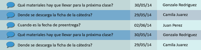 FORO ALUMNOS En el foro de la cátedra, los alumnos podrán interacturar entre ellos. Intercambiando opinones y dudas sobre todo lo referente a las clases.