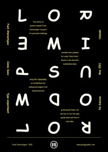 Durante la primera clase del TP2, en la que llevamos nuestras familias tipográficas elegidas para desarrollar el especimen, surgieron, temas como la versatilidad de las familias, sus variables, sus aplicaciones, y la duda de qué tipografía es “buena o “mala” (algo que para mí debe tomarse con pinzas); a veces una tipografía es tildada de horrible por su uso incorrecto. Y aquí es donde comienza la historia que quiero contar. Durante el verano estuve leyendo el libro “Es mi tipo”, de Simon Garfield, que cuenta diversas historias y anécdotas sobre muchas familias tipográficas que usamos corrientemente, sus empleos, sus creadores, y sus usuarios. Es de fácil lectura, amigable. El primer capítu-lo, como para romper el hielo, está dedicado a la historia de una tipografía que muchos en nuestro ámbito han de despreciar: la Comic Sans. Es así. La defenestración hacia la Comic Sans se ha vuelto moneda corriente. ¿Pero alguien se ha detenido a pensar qué es lo que nos llevó a ésto? ¿Alguno ha googleado cual es la génesis de nuestra “archienemiga”? ¿Con qué criterios decimos que es una porquería? Hago estas preguntas para reflexión, no para tomar partido por nada. Toda tipografía está pensada y diseñada con un fin. Sí, incluso la Comic Sans. Fue entregada al mundo con buena voluntad, y su objetivo nunca fue el de esparcir el odio. No. Comic Sans fue diseñada en 1994 por Connare. Como buen diseñador, él buscaba solucionar un problema, para el cual creó una nueva tipografía. Comic Sans se globalizó luego de ser incluida como fuente complementaria en Windows 95. A partir de esto, todo el mundo pudo leerla y también utilizarla. Al cambio de siglo, a la gente comenzó a molestarle. De pronto Connare se vió en el epicentro de una campaña de odio cibernético. Apareció el grupo “Ban Comic Sans” (prohíban la Comic Sans). Connare fue inteligente y agradeció toda la atención que había suscitado y dice: “Si te encanta la Comic Sans, no sabés mucho sobre tipografía. Si la odiás igual. Deberías buscar otro hobby”.