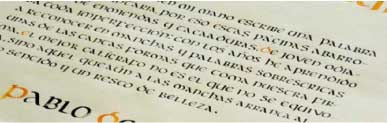 Una vez que este afianzado el puño, se deberá pensar en una puesta tipográfica. Sumado a ello, se puede jugar con tintas de diferentes colores o diferentes tipos de papeles como soporte. Los textos deberán aparecer en tres tamaños distintos y la relación con el soporte les permiten a todos los alumnos experimentar sobre la puesta en página, las jerarquías y también el orden de lectura. Cuando hablamos de jerarquía, hablamos de los niveles de importancia conceptual de los contenidos, y también en tipografía nos referimos a la visualización de la misma. La puesta en página estará influída por la escritura histórica elegida, ya sea la escritura Uncial, la escritura Carolingia o la escritura Gótica. Por ejemplo, las escrituras Góticas la mayoría de las veces suelen ser acompañadas por una letra capital o letra capitular dándo a la puesta una impronta diferente y particular.
