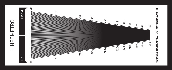 Instrumento de comparación de tramas autotípicas. Para su correcto funcionamiento debe estar confeccionado con la máxima fidelidad posible. Se recomienda filmar en película gráfica a 3600 dpi (resolución mínima 2400 dpi). Evitar la impresión hogareña y las bajadas laser en filmina, ya que la resolución de las mismas no alcanza el grado mínimo de fidelidad necesario.