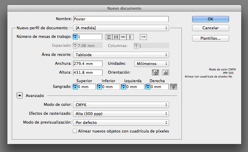 En las dimensiones todos estos programas también te ofrecen plantillas A4, A3, Tabloide, Carta, etc. asegura elegir la adecuada, ir al centro de impresión y solicitar una muestra de cada papel que manejen es una buena opción, esto les ayudara a tener una idea mas clara de las dimensiones de su diseño.
