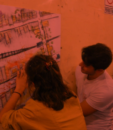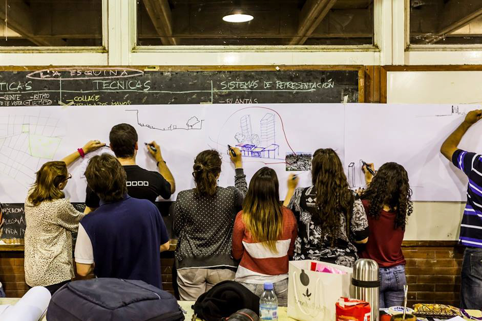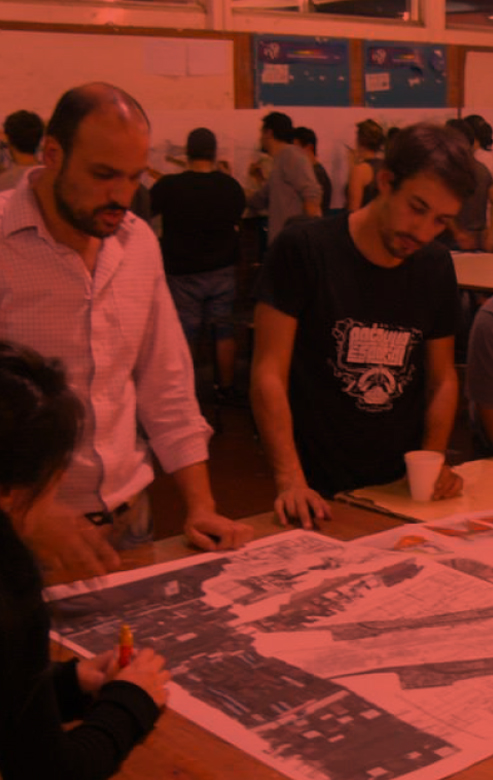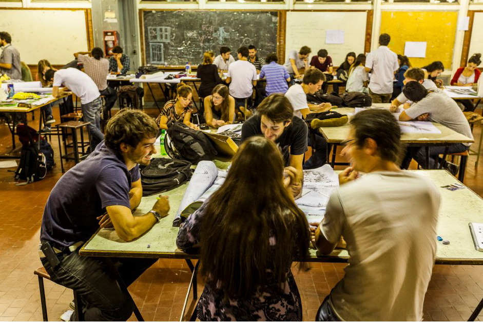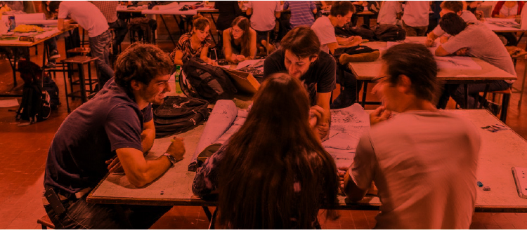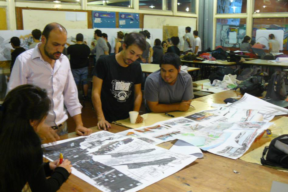 IMÁGENES // LOS ALUMNOS EN TRABAJO GRUPAL Los alumnos de Morfología 1 realizando un trabajo grupal en el taller. VOLVER