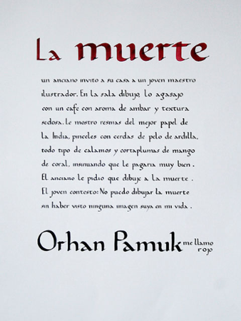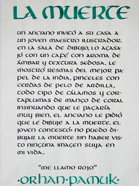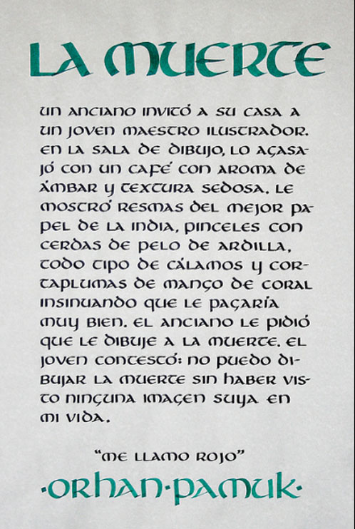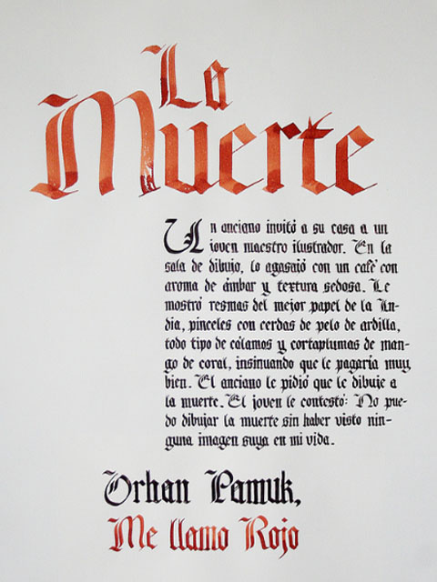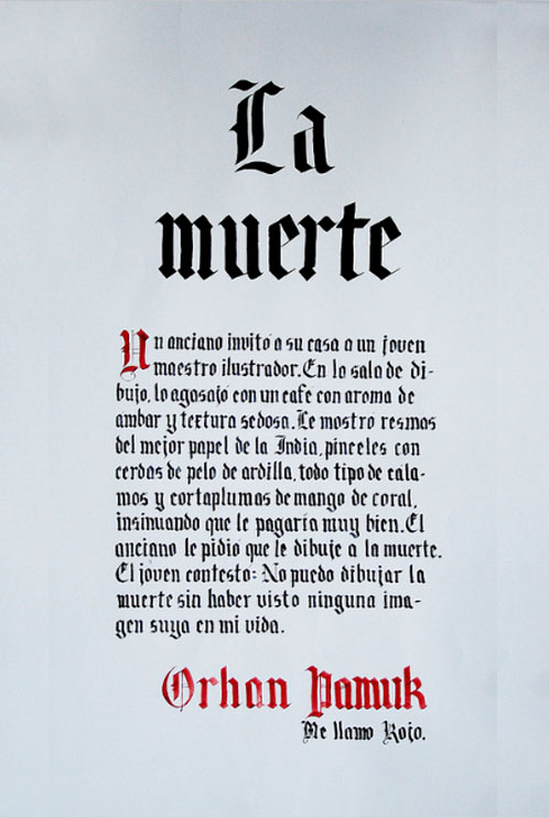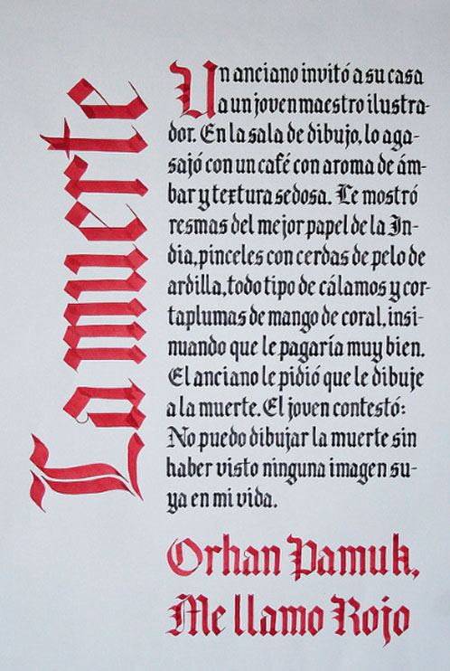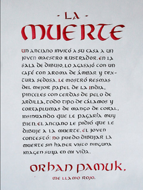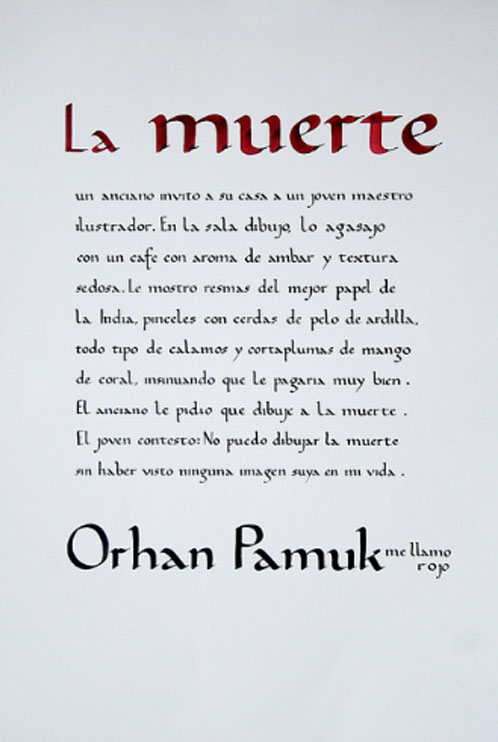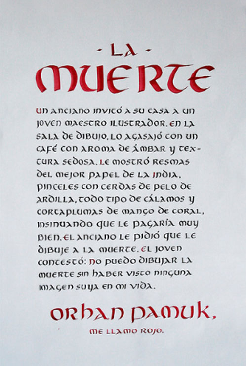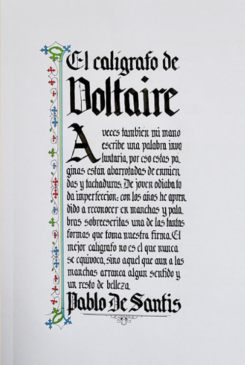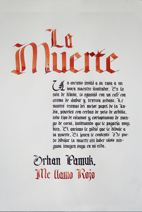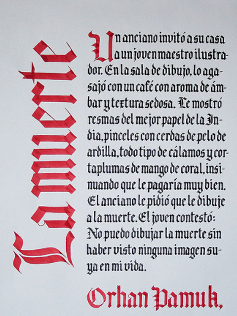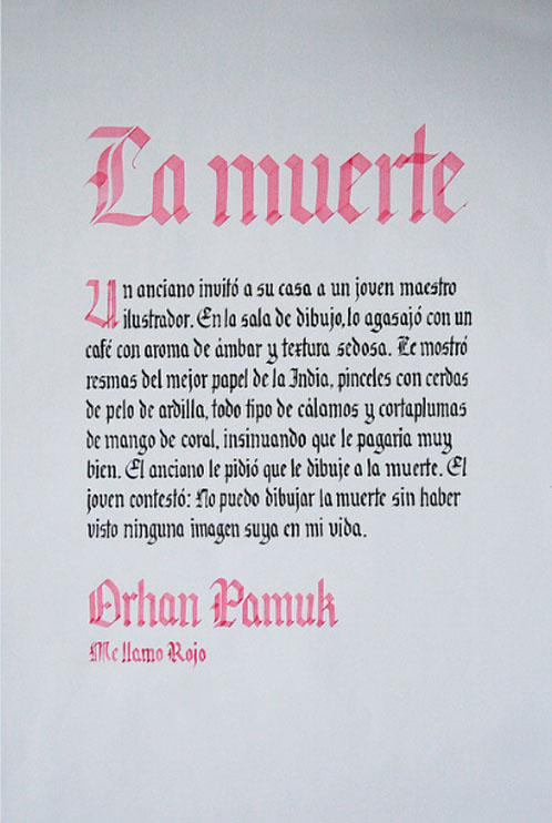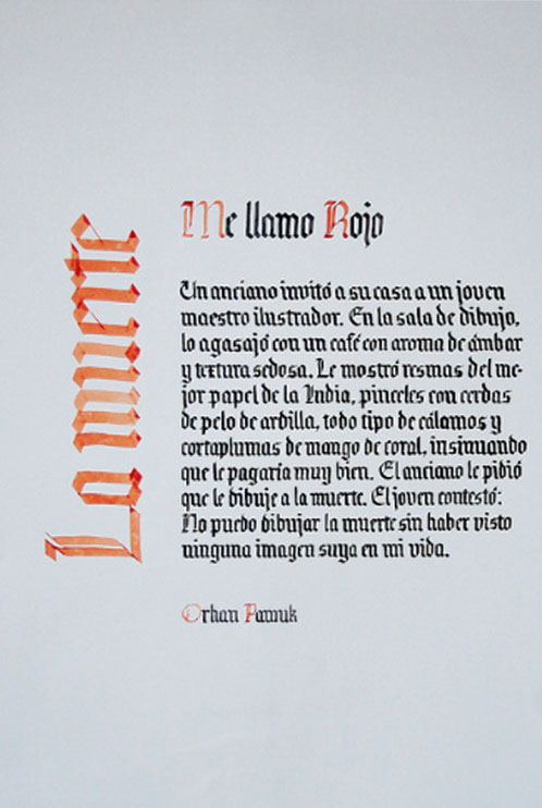 El ejercicio propicia la apropiación del recurso caligráfico al tiempo que indaga algunas de las raíces históricas de la escritura. Los tex- tos en tres tamaños y la relación con el soporte permiten al alumno experimentar sobre puesta en página, jerarquías y orden de lectura.