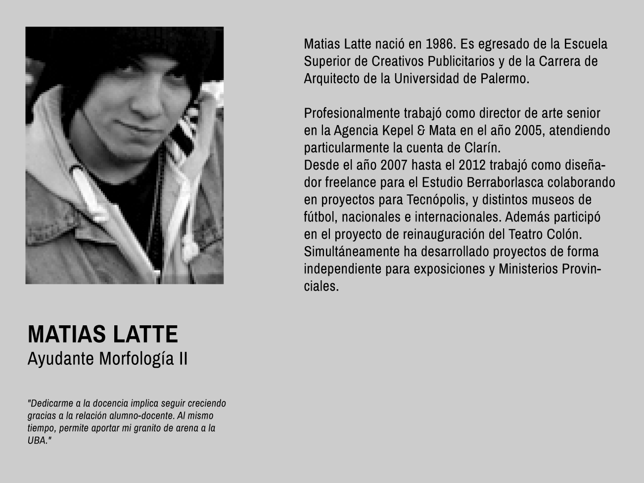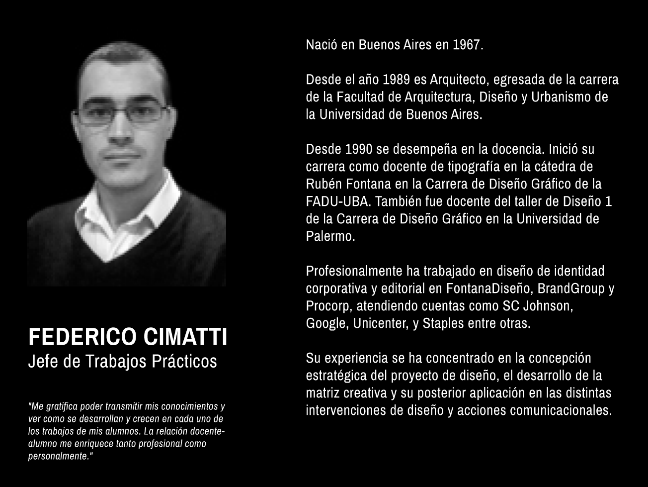 Jefe de trabajos prácticos, desde 2005. Arquitecto y Licenciado en Comunicaciones.