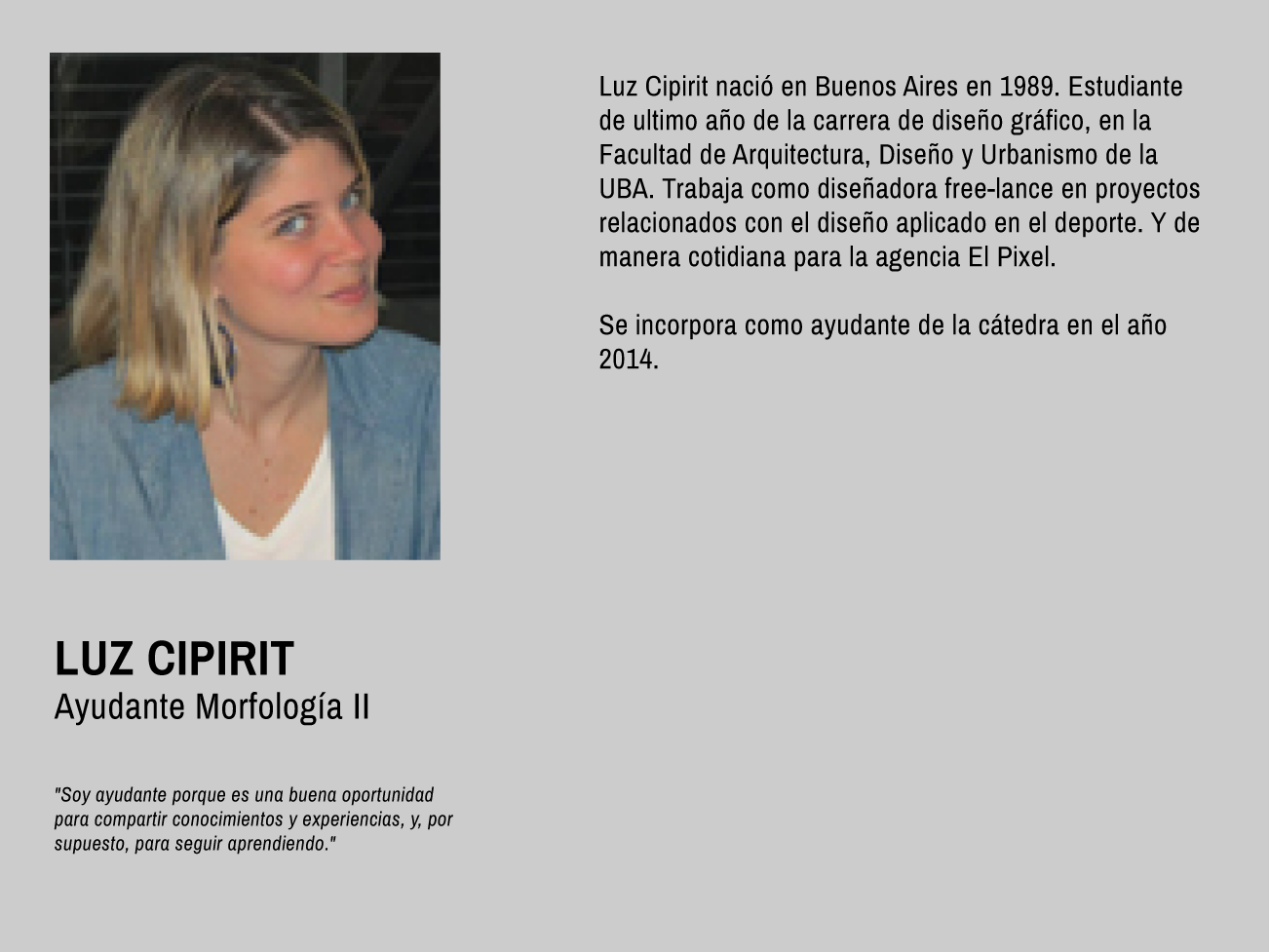 Jefa de Trabajos Prácticos de Morfología 1, desde 2001. Carla, fue una de las primeras en iniciar el proyecto de nuestra Cátedra.