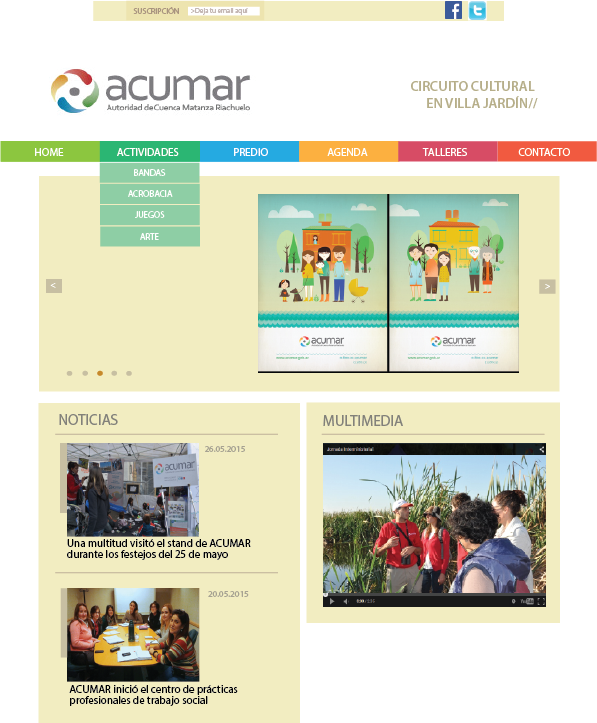 El objetivo de la página es que a partir del diseño de la misma, poder concientizar a los vecinos sobre las principales problemáticas de la cuenca, y asi promover la comunicación y participación social y cultural dentro del barrio.