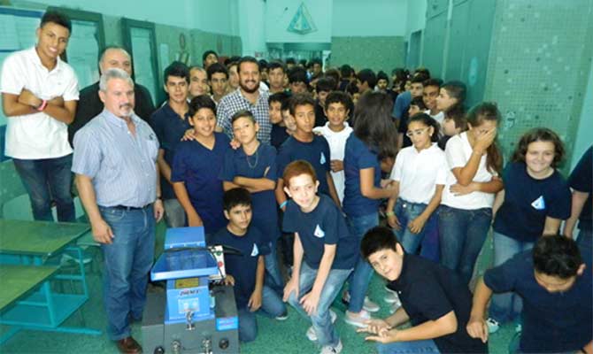 Donó un triturador de plásticos a una escuela