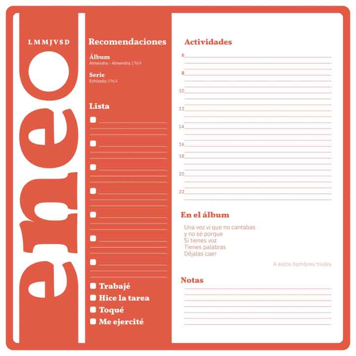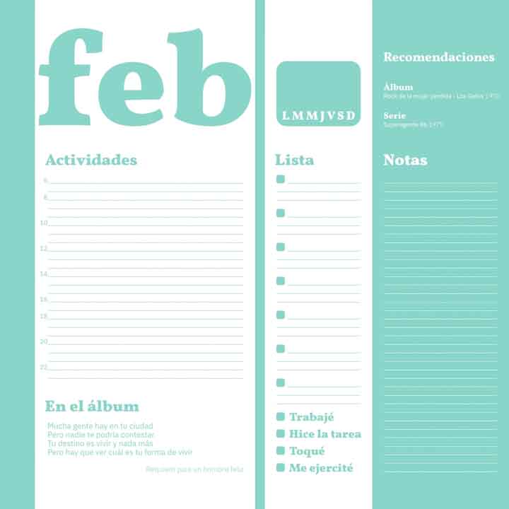 Este trabajo fue desarrollado como muestra de un sistema sobre el concepto de un almanaque perpetuo. Los meses que fueron trabajados son los de primavera, tomando como inspiración la cancion "desarma y sangra" de Serú Girán.