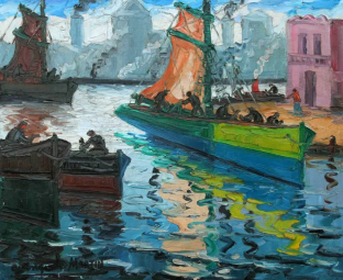 Empezo dibujando y pintando escenas que el veia en su dia a dia en el puerto con sus colores. El observaba a los trabajadores del puerto durante el dia en busca de inspiracion para sus cuadros. A diferencia de otros artistas, Quinquela usaba su espatula para pintar en vez de un pincel, asi que mirando sus cuadros de cerca, podias ver los trazos con claridad. A Quinquela Martín es considerado el pintor de puertos y es uno de los pintores más populares del país.