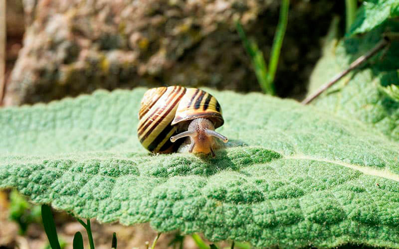 No es necesaria mucha descripción para estas plagas (que están juntas porque tanto los efectos, los cultivos a los que afecta y el tratamiento es el mismo, no hay diferenciación). Todos las conocemos. Pero sí que a veces confundimos sus estragos con los de las orugas, y el tratamiento es distinto. Con estas plagas, muchas veces no encontramos al causante de los daños, sino que nos encontramos con los efectos de su paso por el huerto: hojas mordidas, semilleros que desaparecen. Para diferenciar entre una hoja mordida por un caracol y una mordida por una oruga, fíjate en estas imágenes: