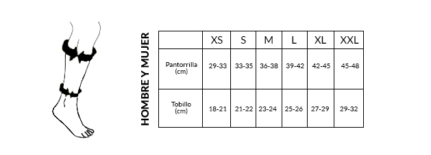 Toma un centimetro y rodea tu pierna en la zona de la pantorrilla (la parte posterior de la pierna por debajo de la curva de la rodilla). Escoge la medida que se encuentra entre las dadas en la imágen.