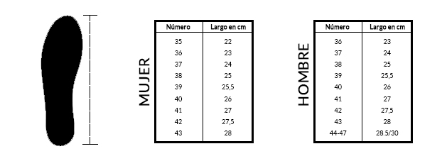 Mide desde la punta de tu dedo más largo hasta el talón y revisa en la tabla de medidas a que número corresponde tu medida.