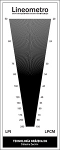 Es un transportador que te marca la cantidad de lineas de una pelicula, a mayor cantidad mas definicion. Ejemplo: un afiche de via publica ronda las 75 lineas, un diario las 100 lineas, un impreso en papel obra 133 lineas, papel ilustracion de 150 a 200 segun la calidad del trabajo.
