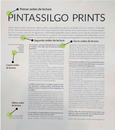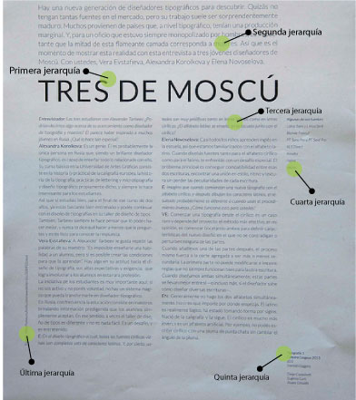 Deberá resolverse la puesta en página de la entrevista teniendo en cuenta el orden de lectura y las jerarquías de la misma. Deben estar claros estos niveles de información, y se podrán usar como herramienta algunas variables tipográficas, diferentes tamaños de cuerpo de texto y también a su vez los diversos recursos que el alumno considere como interesantes y acordes a lo pedido.