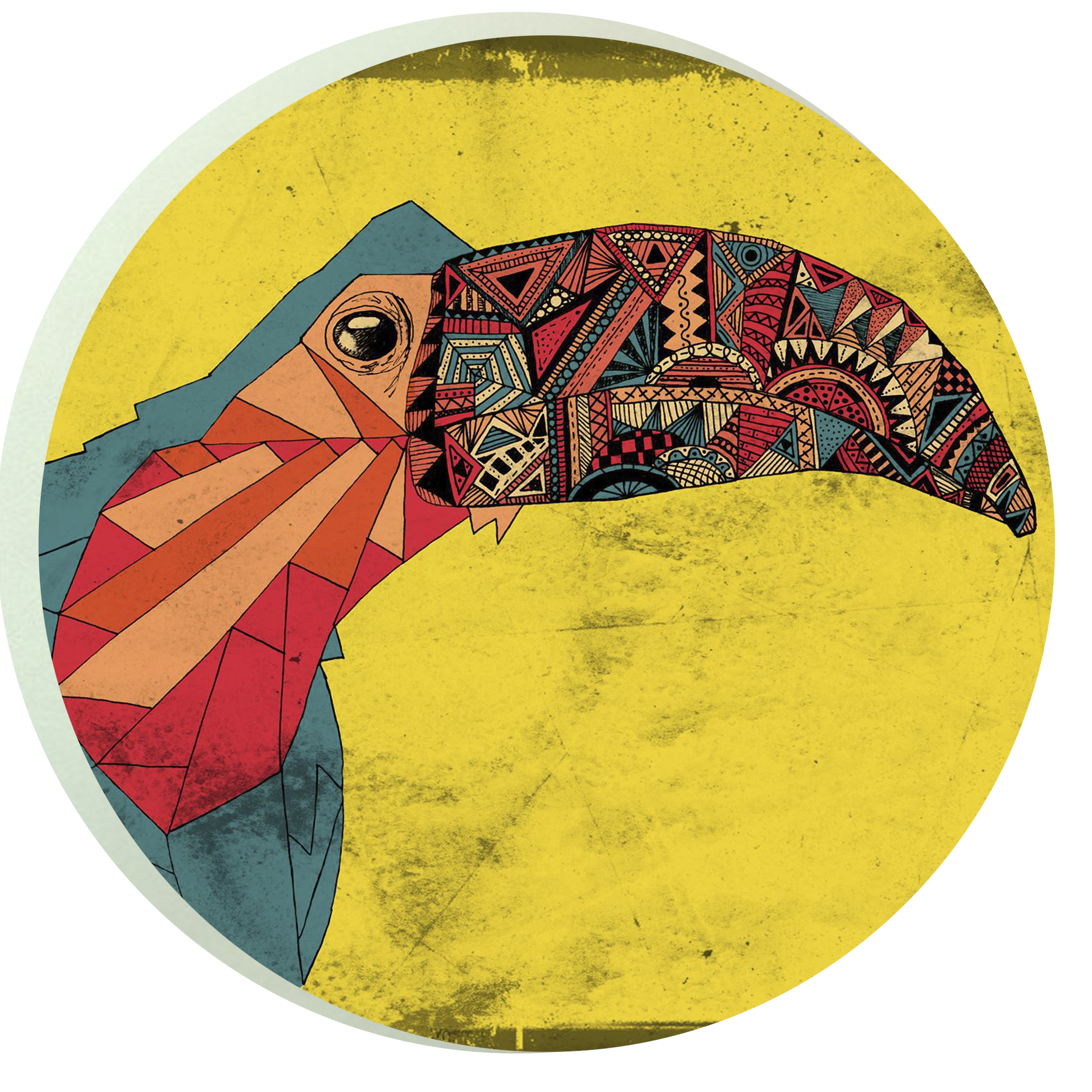 Un tucan que forma parte de una serie de animales psicodelicos,