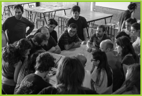 Para empezar la correción, nos encontramos en un taller, prenivelamos todos los trabajos de la cátedra a partir de una prenivelación anterior que hace cada comisión el mismo dia de la entrega. Luego esperamos un rato para empezar traquilos la corrección mientras van llegando todos los alumnos. Siempre con buena onda para pasar un lindo mediodia de sabado. Todos llevan mate para compartir y cosas ricas para comer!