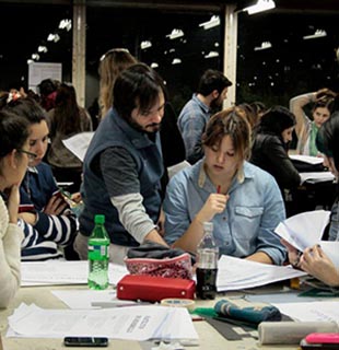 El trabajo sobre composición permite a los alumnos la práctica de los saberes aprendidios anteriormente aplicados a la composición digital. La sensibilidad desarrollada en los trabajos anteriores permite el control de los espacios propios de la familia tipográfica.