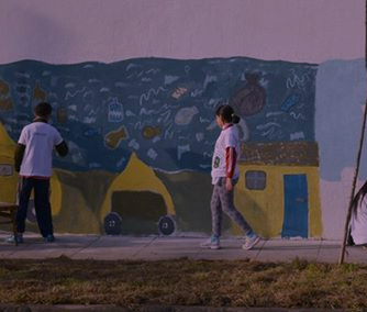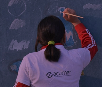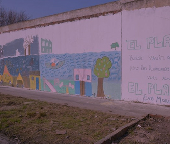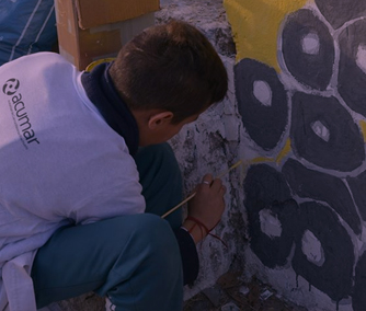 Pintada de mural junto a alumnos y docentes de la Esc. N°77 "Santa Cruz"