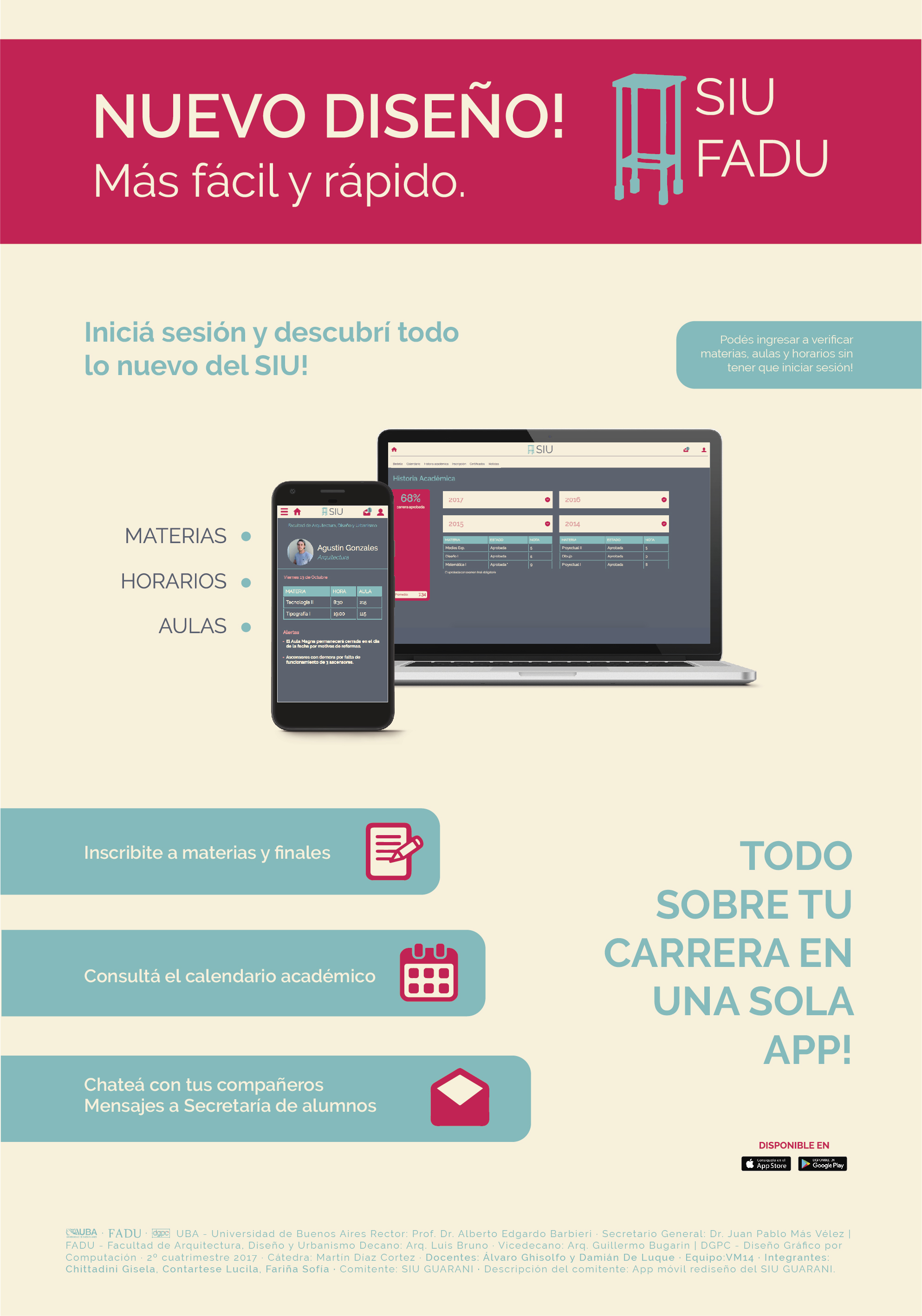 El SIU Guaraní es el Sistema de Autogestión de Alumnos el cual permite la inscripción a materias y exámenes, consultar el plan de las carreras y la historia académica. Este cuatrimestre vamos a proponer un rediseño del sitio web, planteando un acceso más eficiente a la informacion que provee este sistema.