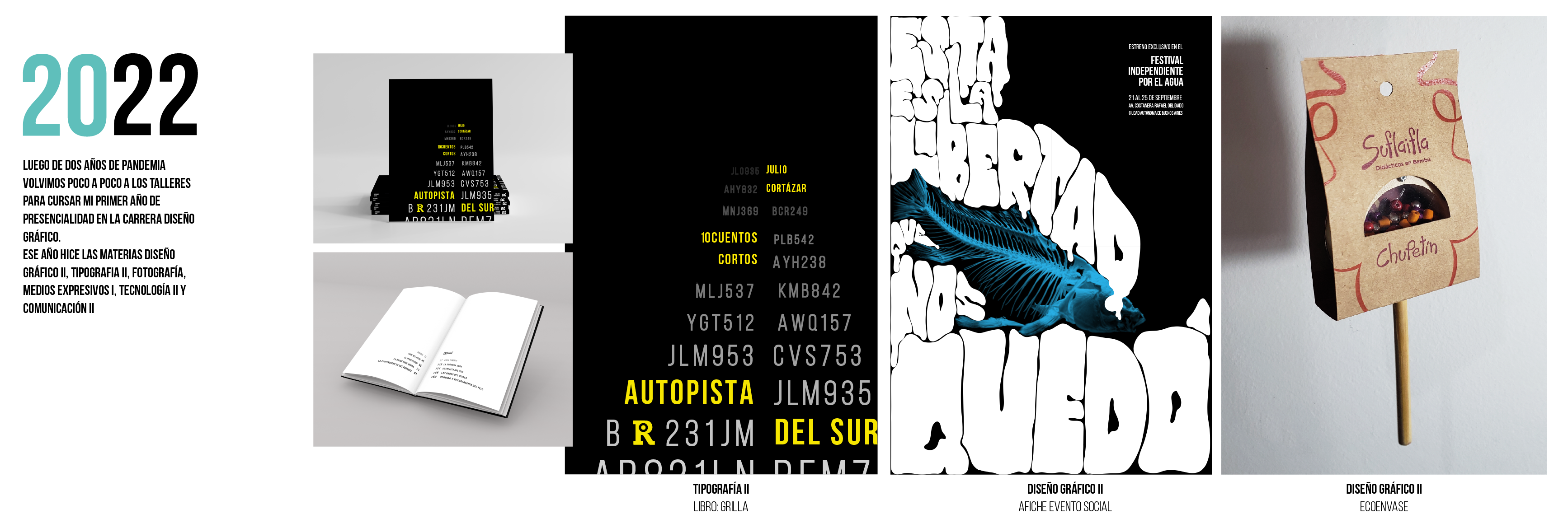2021 Primer año de Diseño Gráfico Segundo año de pandemia y primer año de DG. Cursé las materias Diseño Gráfico I, Tipografía I, Comunicación I, Tecnología I y II.