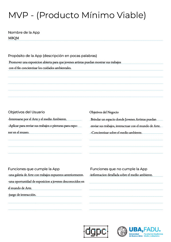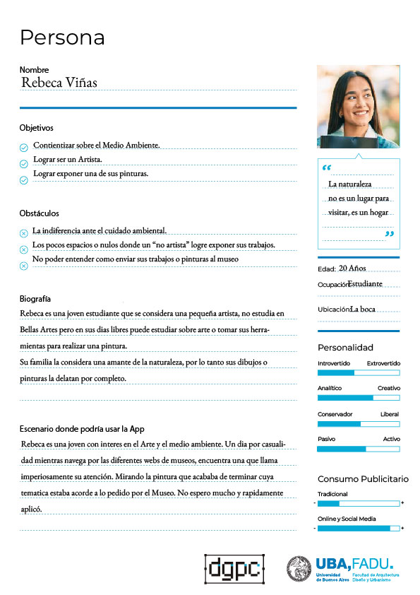 Nuestro objetivo es promover una exposicion abierta para que jovenes artistas puedan mostrar sus trabajos con el fin concientizar los cuidados ambientales. La app esta adeptada para jovenes de entre 15-25 años, estudiantes con un gran interes en el Arte y en el Medio Ambiente.