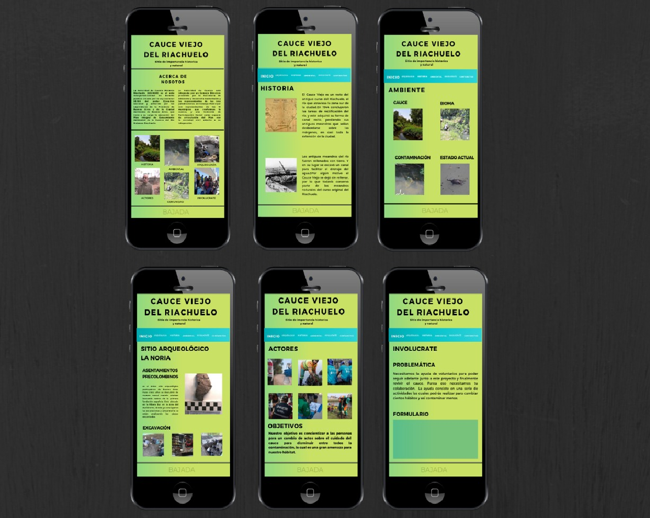 En principio figura acerca de quienes somos para que la persona quien llegue al sitio pueda conocernos, informarse y saber nuestro objetivo, luego podrán recorrer através de imágenes e información la historia del cauce, finalmente podrn visualizar imágenes de su estado, y tendran un formulario destinado a todo aquel que quiera colaborar.