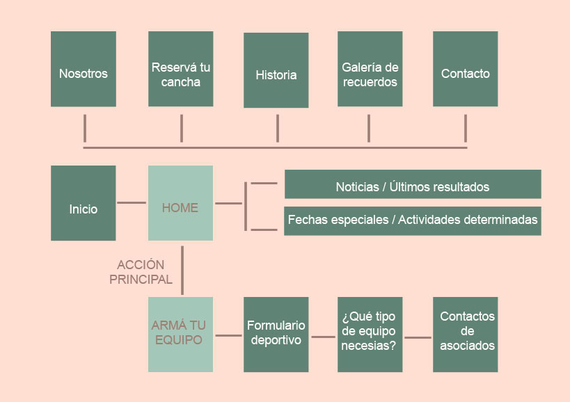 El sitio del club contará con una barra de navegación y, luego, estará dividido en varias secciones (noticias, últimos resultados de partidos, y demás, que variarán de acuerdo a fechas especiales o actividades determinadas). Además, se contemplará el acceso a la acción principal: "Armá tu equipo".